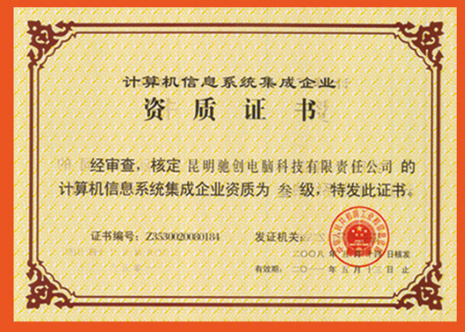 •  計算機信息系統(tǒng)集成企業(yè)叁級資質證書