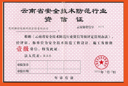 •  云南省安全技術防范行業(yè)資信證壹級證書